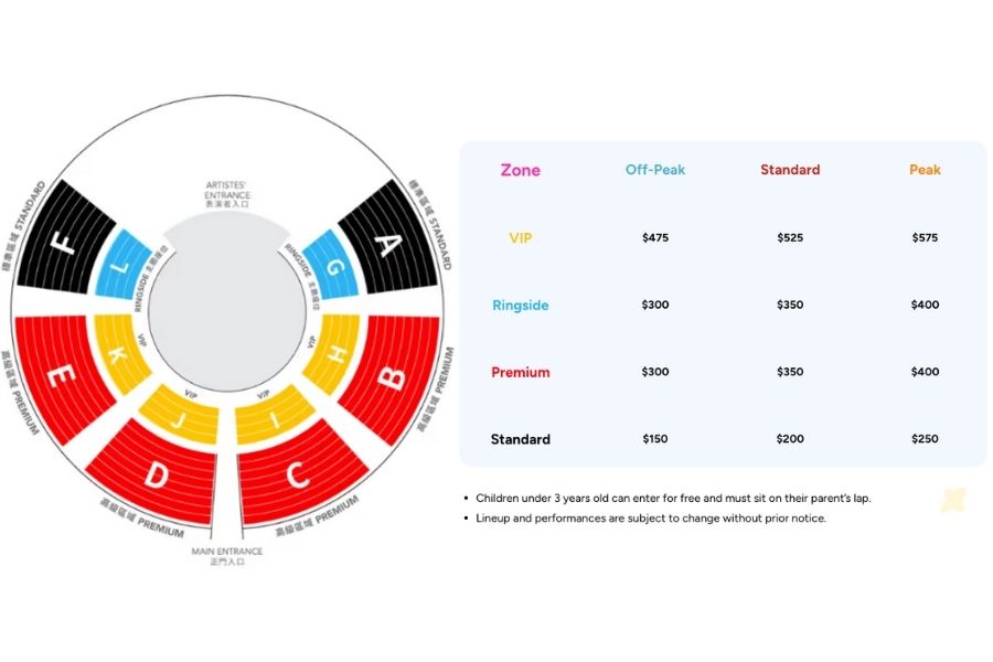 Tickets for The World Circus need to be bought separately, and cost HK$150-HK$575, depending on which day you attend and which section of the tent you book your seats.