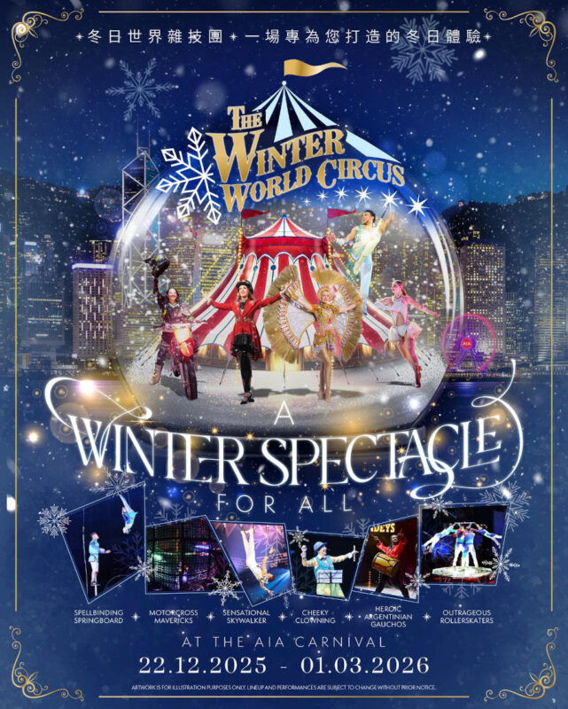 The Winter World Circus will return to Hong Kong this season as part of the AIA Carnival at the Central Harbourfront. The event will run from 22 December 2025 to 1 March 2026 and will bring a new programme created by Gandeys Circus, one of the world’s longest running touring circuses. The show will run for 60 minutes and will feature international performers presenting a mix of stunts and family entertainment.